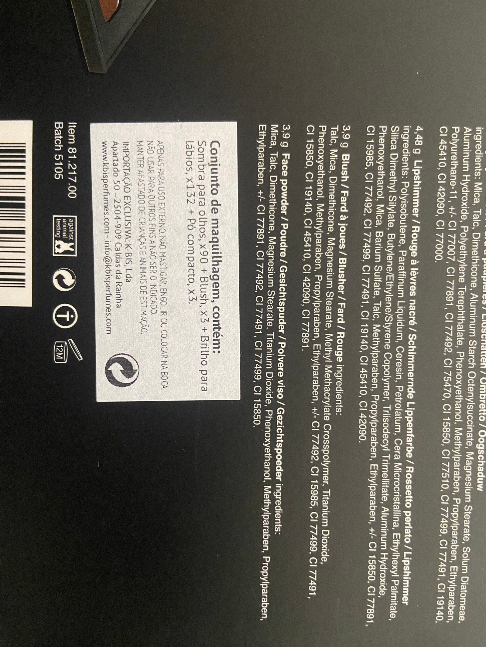 Sombra para olhos x90 + Blush, 3x + brilho para lábios, 132 + Pó compacto, x3.