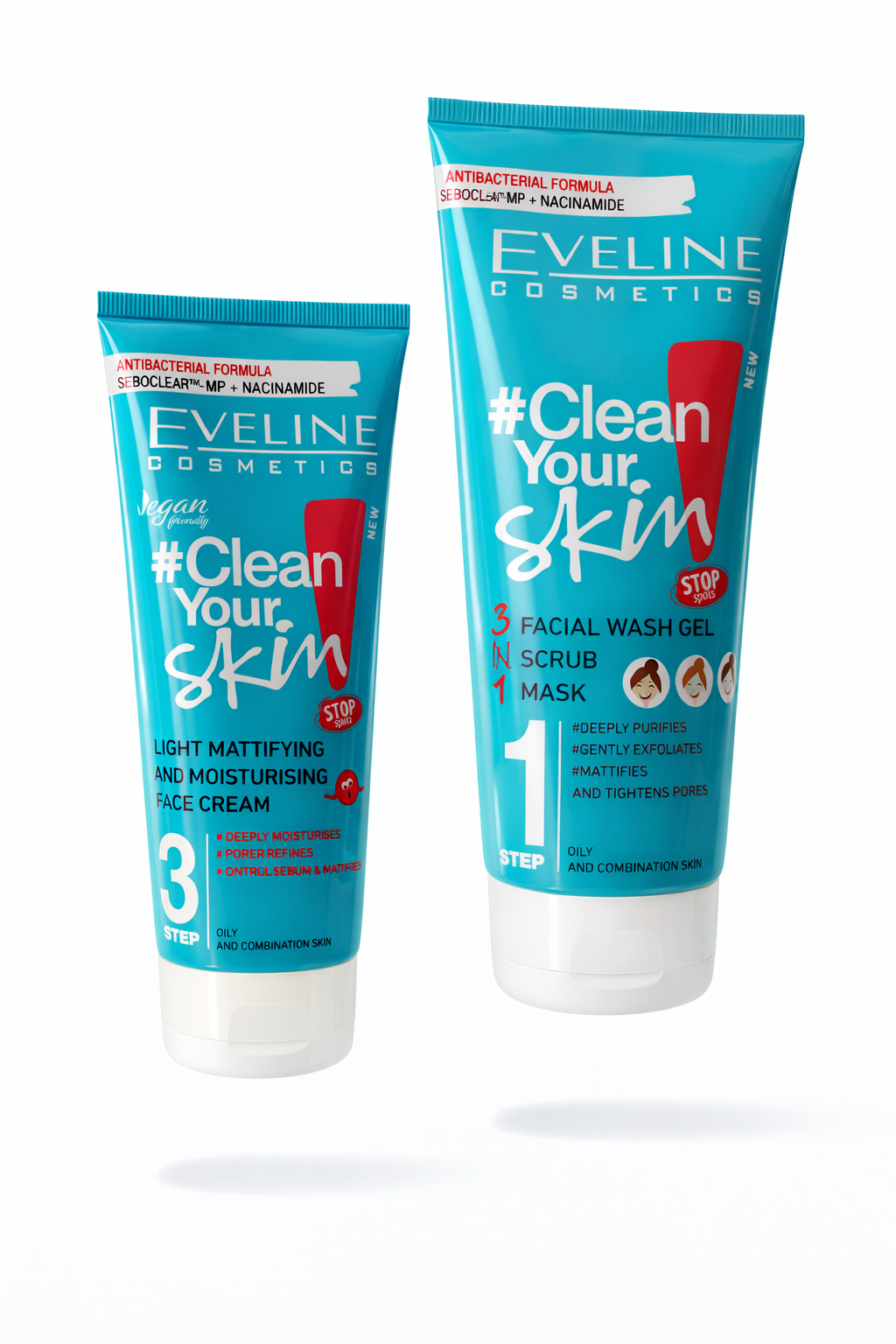 A combinação destes dois produtos atua nas duas necessidades mais importantes da pele jovem: